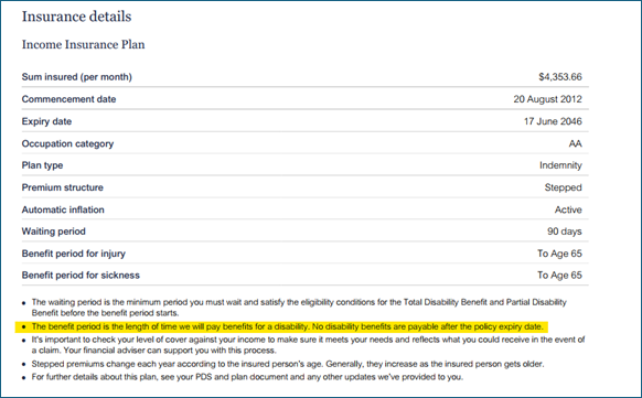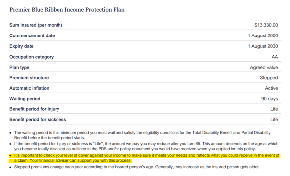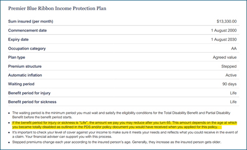 What is the change? To address this issue, all Income Protection Plans (except those with lifetime benefit periods) will now include the following disclosure on the insurance schedules/statements in the “Insurance details” section: